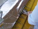 アルミ箔と特殊プラスチックフィルムをベースに加工した水蒸気を通さない防湿・防錆フィルムシートを使い、用途に応じたサイズの角底袋を製作しております。